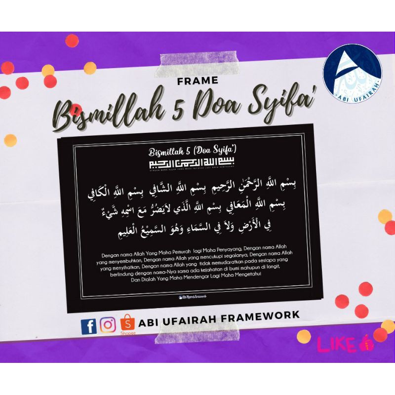 Bismillah 5 adalah pendinding dan ayat penyembuh (syifa) segala penyakit serta amat bermanfaat dan amat baik dijadikan sebagai amalan .